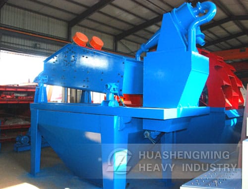 Presently, the most man-made sand production line adopts wet process. No matter which model sand washer they put in use, the biggest weakness is serious loss of fine sand ( below 0.16mm), sometimes the loss is up to 20%. The problem is not only the sand loss itself, but also results in unreasonable sand gradation and more coarse fineness module, it influences the sand quality. Moreover, excessive sand flow away leads to environmental pollution. In response to this problem, HSM elaborates XSH series fine sand recycling system. This system absorbs world’s advanced technology, and takes the view of practical working situation. It is ranged in top class international. The applicable fields are aggregate processing system for building hydro power, processing system for glass raw material, man-made sand producing line, coarse coal slime recycling and environmental protection system (mud purification) in coal preparation plant, etc. It can works effectively in collecting fine sand.