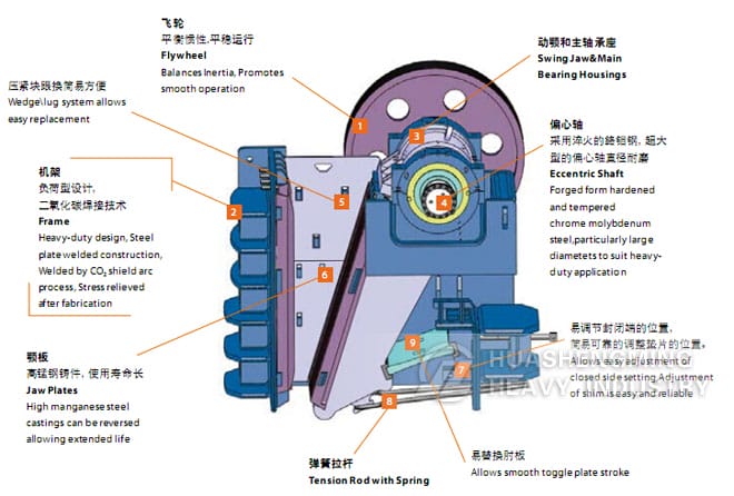 chat onlineThe motor drives the belts and the belt wheels, and make the movable jaw up and down by the eccentric shaft. When the movable jaw descends, the angle between the fixed jaw and the movable jaw becomes smaller, and the materials can be crushed; when the movable jaw rises, the angle between the fixed jaw and the movable jaw becomes bigger; and the movable jaw plate leaves from the fixed jaw by the function of the tension rod and the spring. And then the crushed materials are discharged from the lower outlet of the crushing cavity.