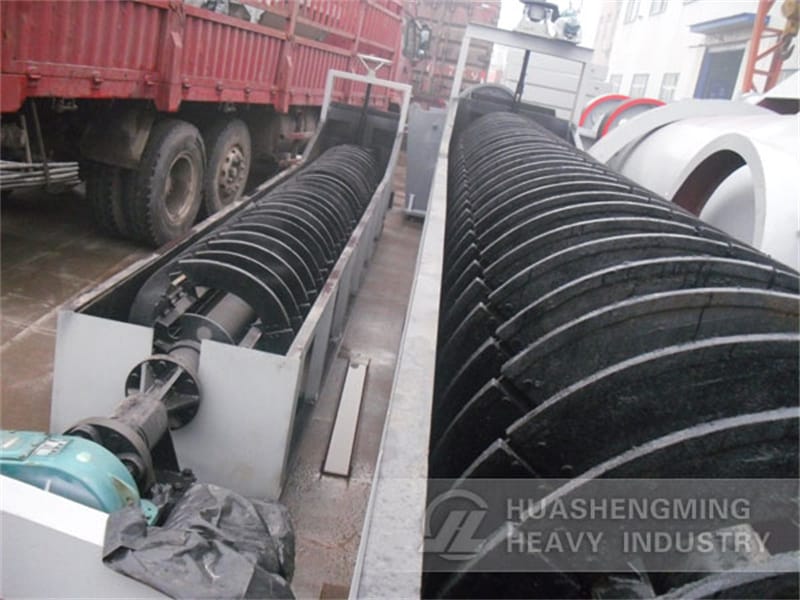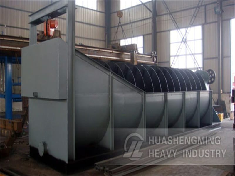 Spiral classifier mechanically classifies the ore materials through the mechanism of different sedimentation speed of solid particle in liquid due to different granularity and specific gravity. The fine ore floating in the water overflows out; and the coarse ore sediments on the tank bottom and then is pushed upwards by the spiral to be feed the grinding machine.